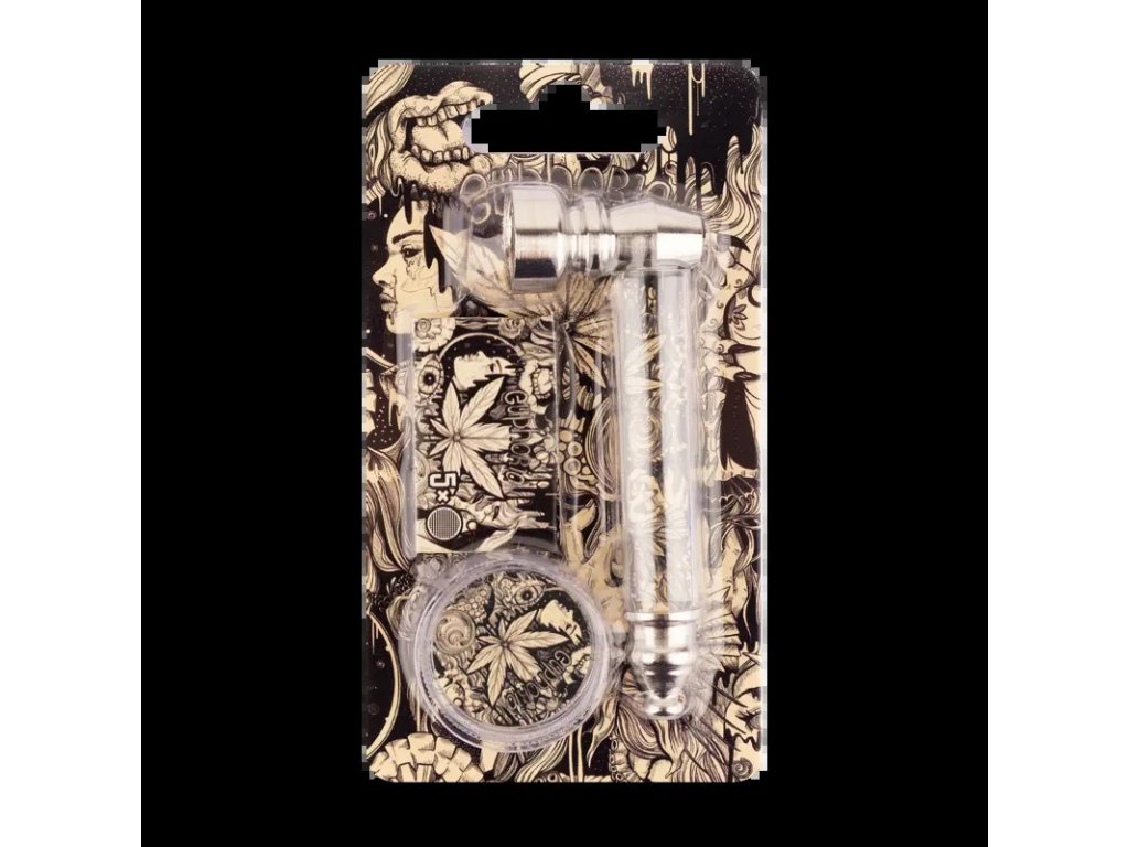 Kompaktní sada typu „vše v jednom“, obsahující kovovou dýmku, mini mlýnek a sítka pro dýmku. Navrženo s ohledem na snadné použití a každodenní používání.