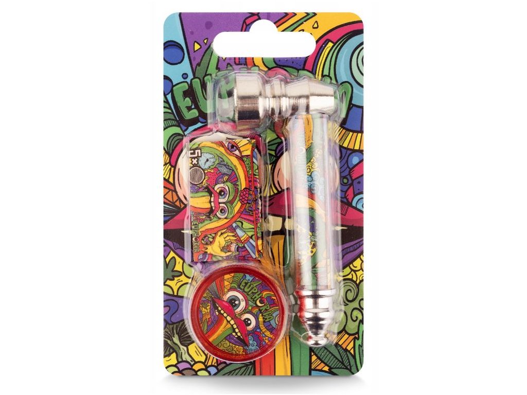 Kompaktní sada typu „vše v jednom“, obsahující kovovou dýmku, mini mlýnek a sítka pro dýmku. Navrženo s ohledem na snadné použití a každodenní používání.