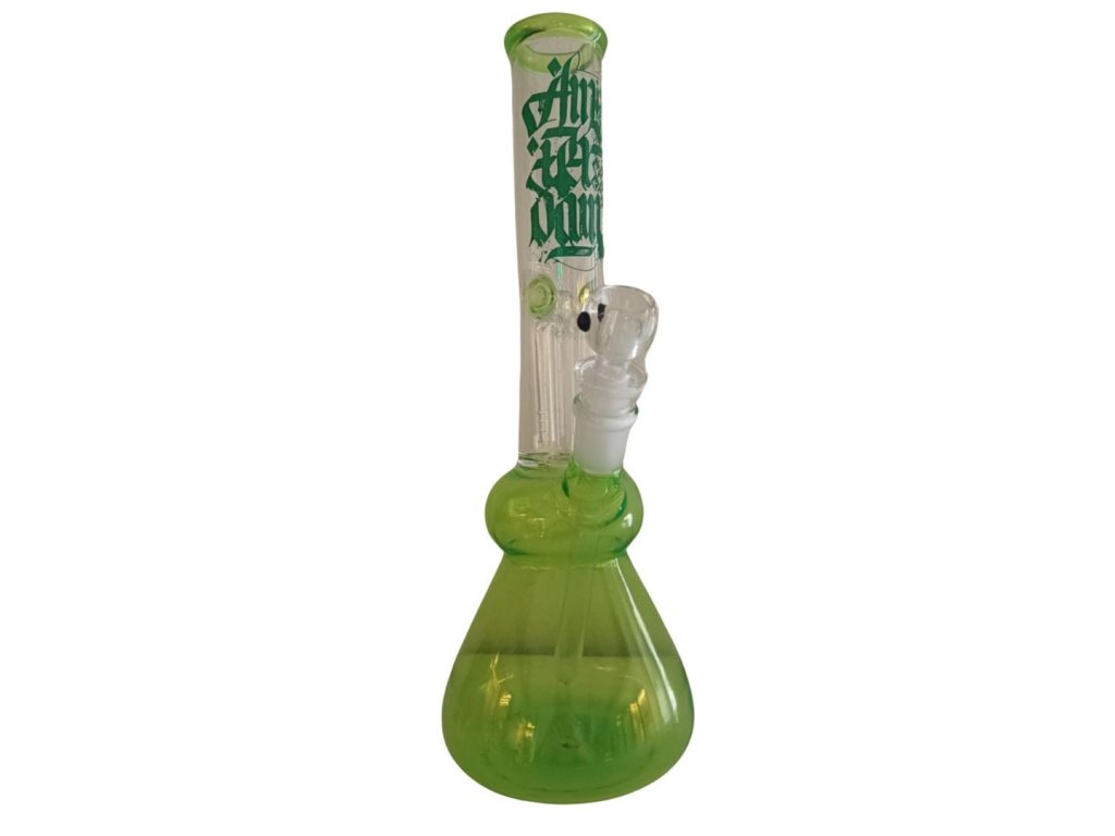Bong obsahuje perkulaci pro výrazné ochlazení a zjemnění vašeho kouře. Celý komplet je v čirém provedení se zelenými akcenty a logem